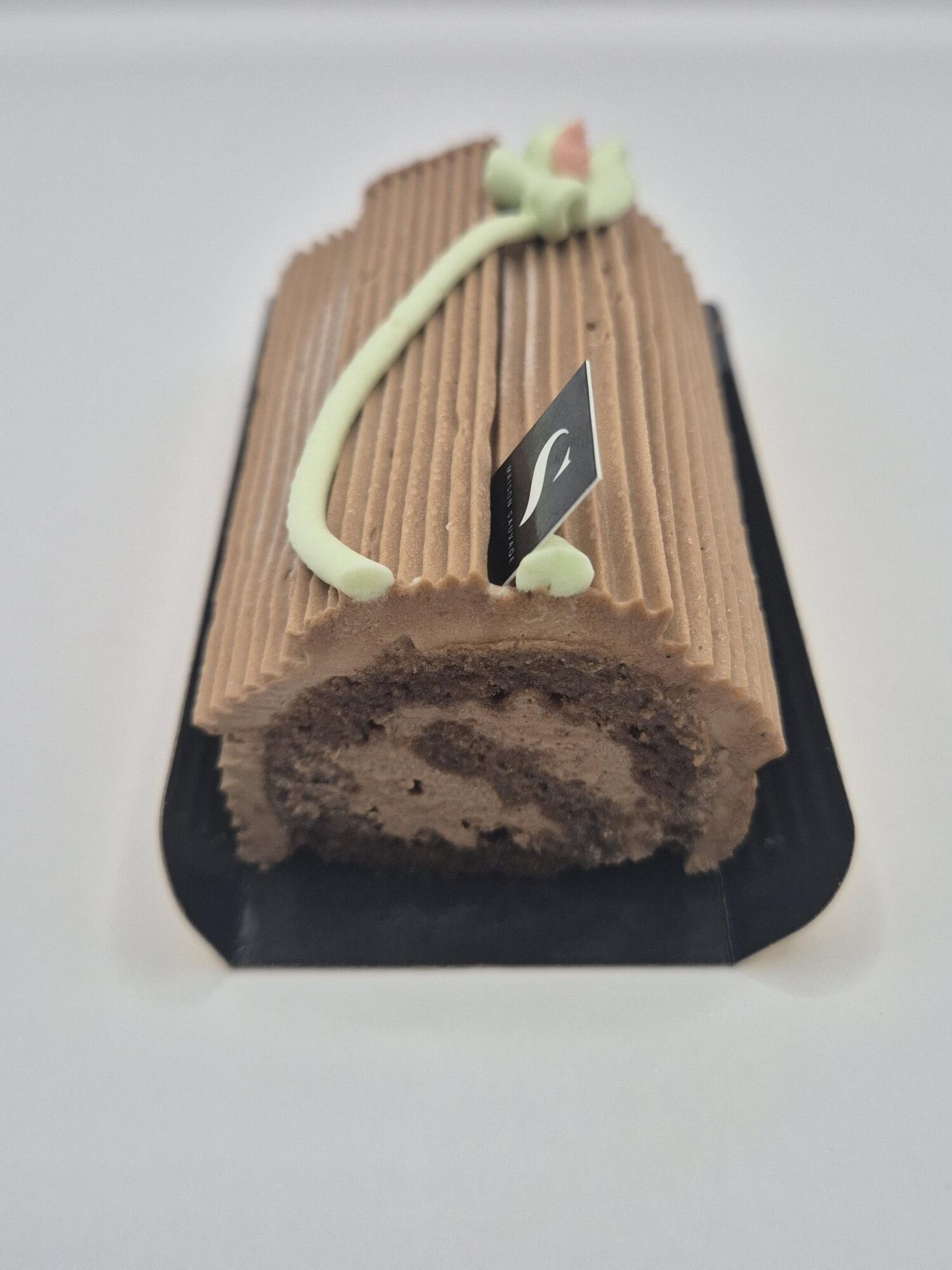 Succombez à notre bûchette gourmande, généreusement garnie d’une crème au beurre au chocolat fondant. Un mariage parfait de textures et de saveurs pour un moment de pur plaisir chocolaté.