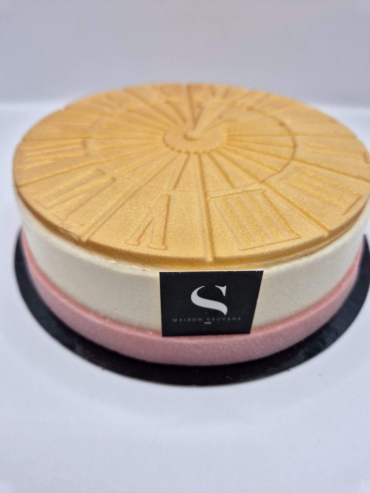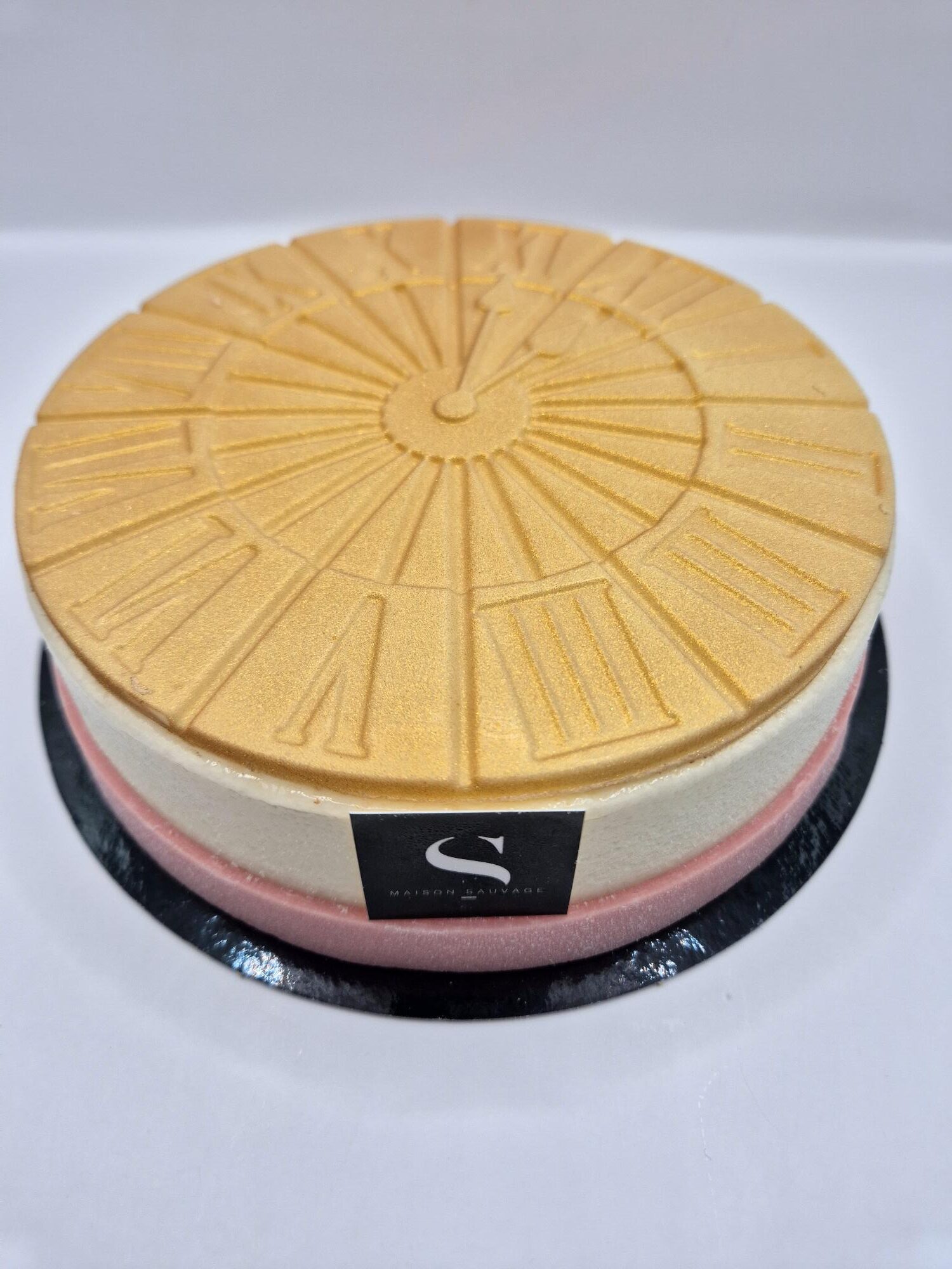 Le Gâteau de l’An est une création raffinée alliant la douceur d’un biscuit macaron, le croquant d’un crumble au chocolat blanc, la légèreté d’une mousse au champagne et la fraîcheur de mousses et confit de fraises des bois.